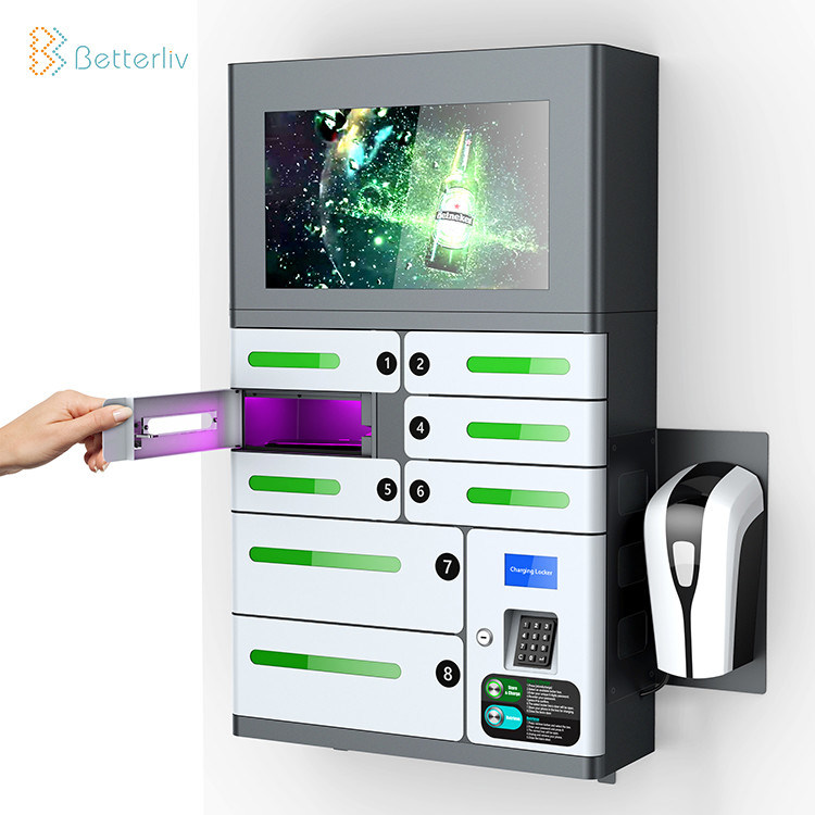 ODM 8 cOem κινητό ντουλάπι τηλεφωνικών φορτιστών ντουλαπιών τηλεφωνικής χρέωσης κόλπων κινητό περίπτερο χρέωσης με το UV αποστειρωτή αρρενωπό LCD